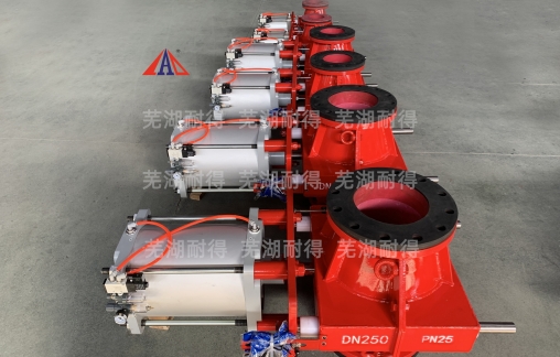 芜湖耐得气囊式胶管阀(管夹阀)。阀体由铸铁、铸铝,碳钢或不锈钢等组成。工作原理是利用阀体与胶管间的气隙使胶管变形截断流动,控制介质条件为空气或水,压力为3-6bar。内衬胶管工艺为纯手工打造,由固液两相耐纳特橡胶经过帘子布加强最后由天然橡胶合成。