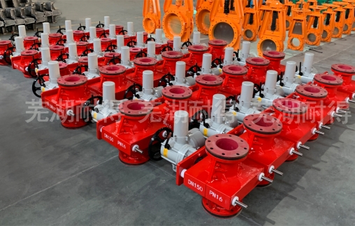 管夹阀别称胶管阀。工作原理就是利用手动、电动、气动、液动、伞齿轮等驱动方式通过挤压内衬胶管达到开关的作用,是一种新型化经济适用型的管道流体介质控制阀门,常用于矿山、污水、发电、化工、石油等行业。