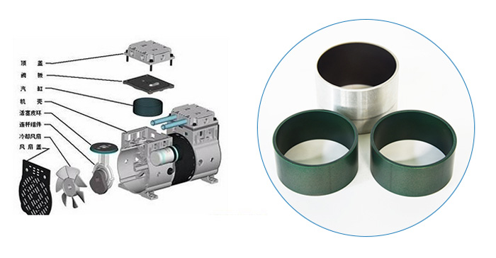 自润滑涂层在无油静音空压机气缸内壁处理后,通过3000小时次台架试验,表面涂层磨损量小于0.01mm,同时自润滑涂层可以显著延长部件的使用寿命,有效的降低起动摩擦系数,保护对偶件,解决表面划伤、点蚀等不良现象。